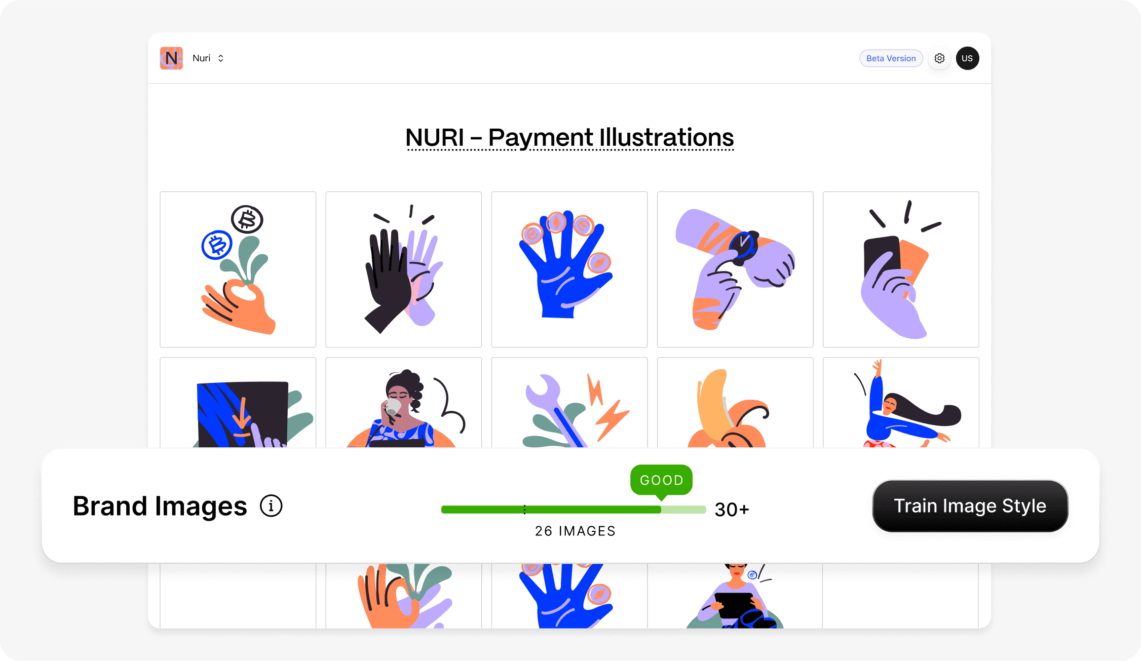 Upload images from a specific visual style within your brand imagery. We use them to train your AI-ready brand image style. Once it’s set up, you can create new visuals that match the look and feel of your brand across different formats and use cases.