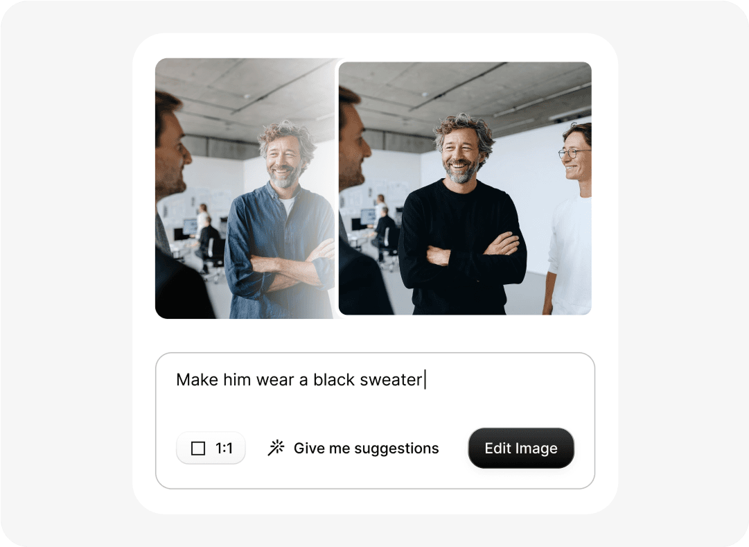 Make small, precise edits like changing colors or removing elements without losing the visual language of your brand.